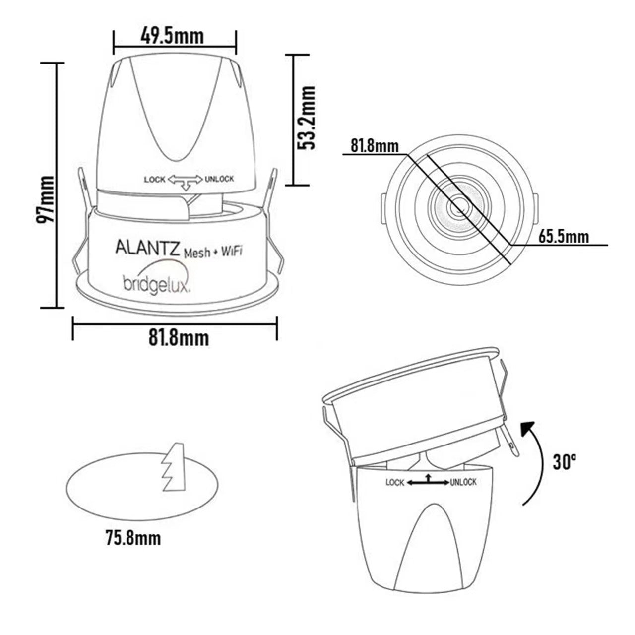 The ALANTZ 66-12W COB Smart Tricolor features a Bridgelux COB LED chipset offering precise color temperatures of 3000K, 4000K, and 6000K for versatile lighting needs.
